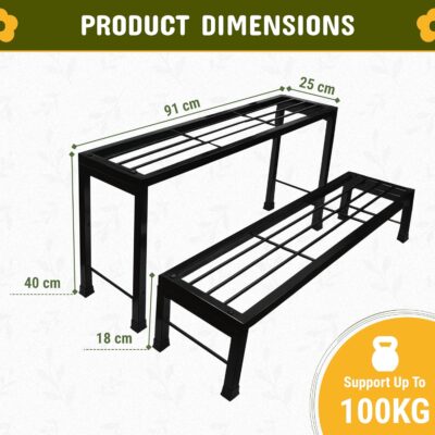 2 Step Plant Stands For Outdoor Balcony – Heavy Duty Flower Pot Stand For Indoor Plants – Elegant Metal Planter Stand For Living Room, Home Decor, Indoor & Outdoor Plants, (2 Tire – 91 x 25 cm, Black)