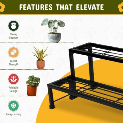 • Decorative & Multipurpose – Our sleek 2 tier plant stand that’s more than just a plant stands piece—use it as a flower pot stand, stand for pots, or to hold décor, cookware, vases, or bins in any room or shop.