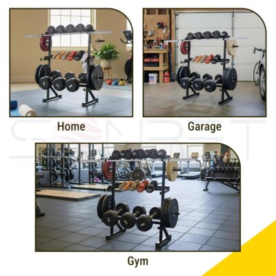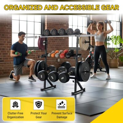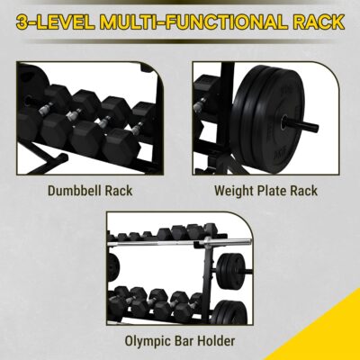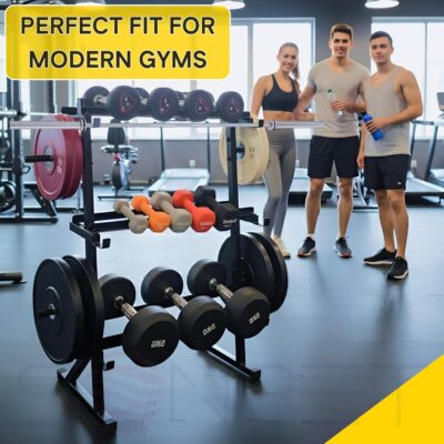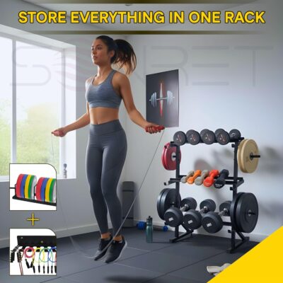 Versatile and Gear-Safe: This gym rack provides proper storage for dumbbell, weight plate, and barbell, preventing damage and extending equipment life. Suitable for home workouts and commercial gyms.