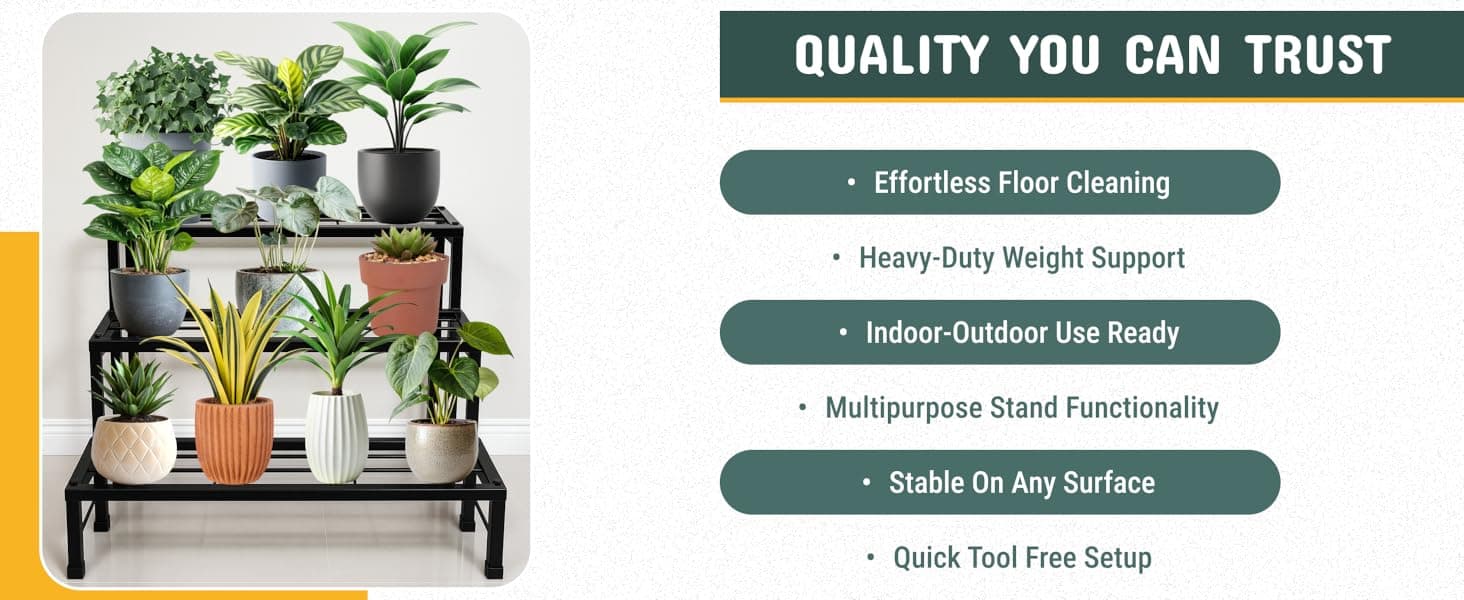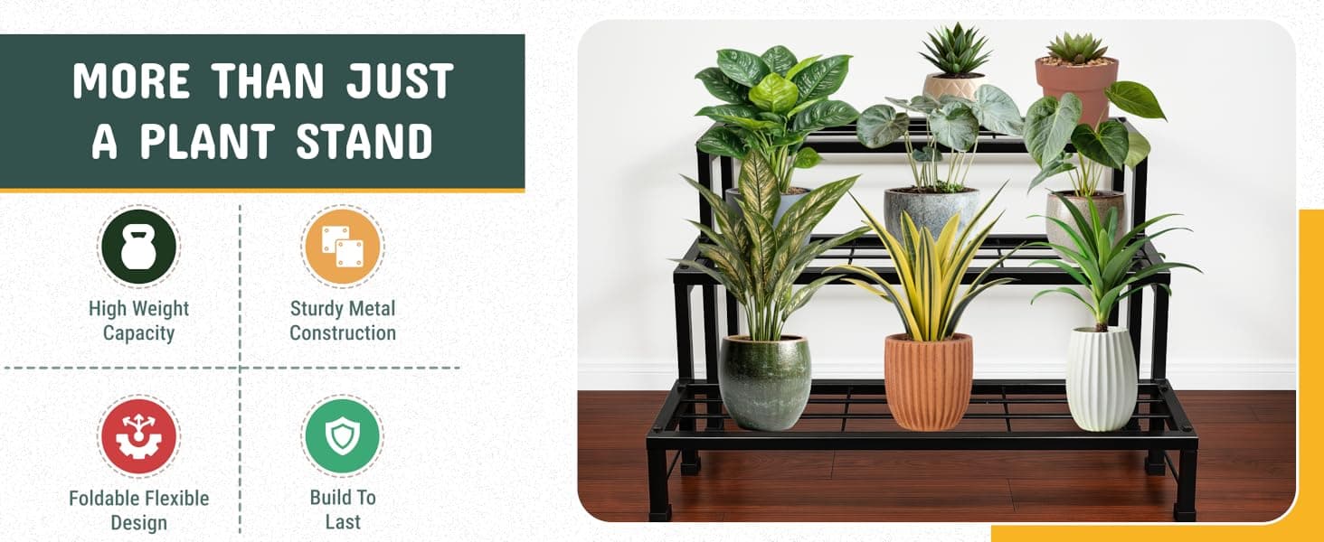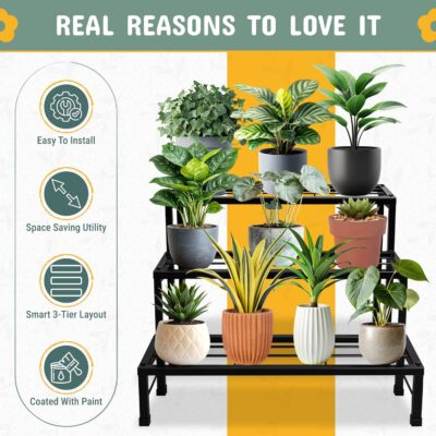 Decorative & Multipurpose – Our sleek 3 tier plant stand that’s more than just a plant stands piece—use it as a flower pot stand, stand for pots, or to hold décor, cookware, vases, or bins in any room or shop.