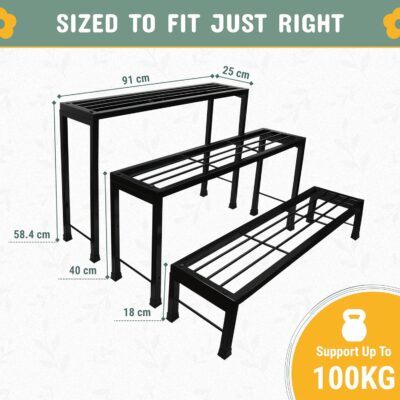 3 Step Plant Stands For Outdoor Balcony – Heavy Duty Flower Pot Stand For Indoor Plants – Elegant Metal Planter Stand For Living Room, Home Decor, Indoor & Outdoor Plants, (3 Tire – 91 x 25 cm)