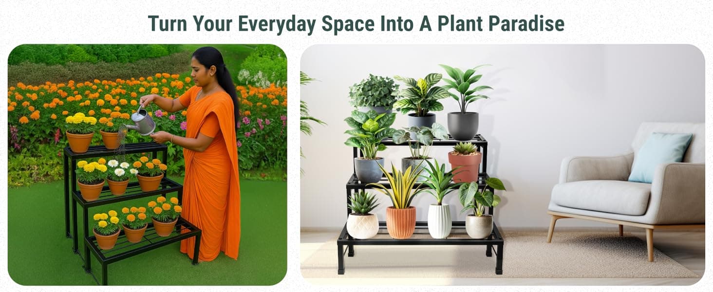 Usage Tips: To ensure stability of your pot stand for outdoor plants big size or plant stands for outdoor balcony, place the stand for plants in balcony on a flat surface and avoid overloading.