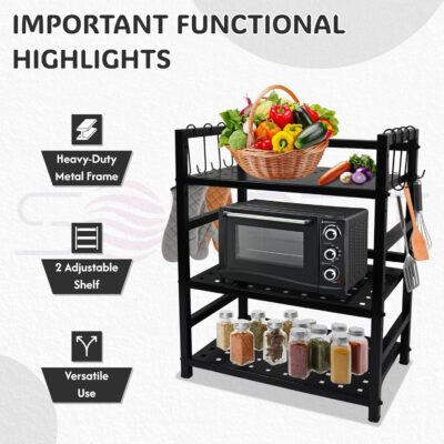 Be the first to review “3 – Tier Microwave Stand for Kitchen Platform – Oven Stand with 2 Height Adjustable Shelf & 8 Storage Hooks – Easy to Clean Multi-Purpose Microwave Rack for Kitchen, Oven Rack for Office”