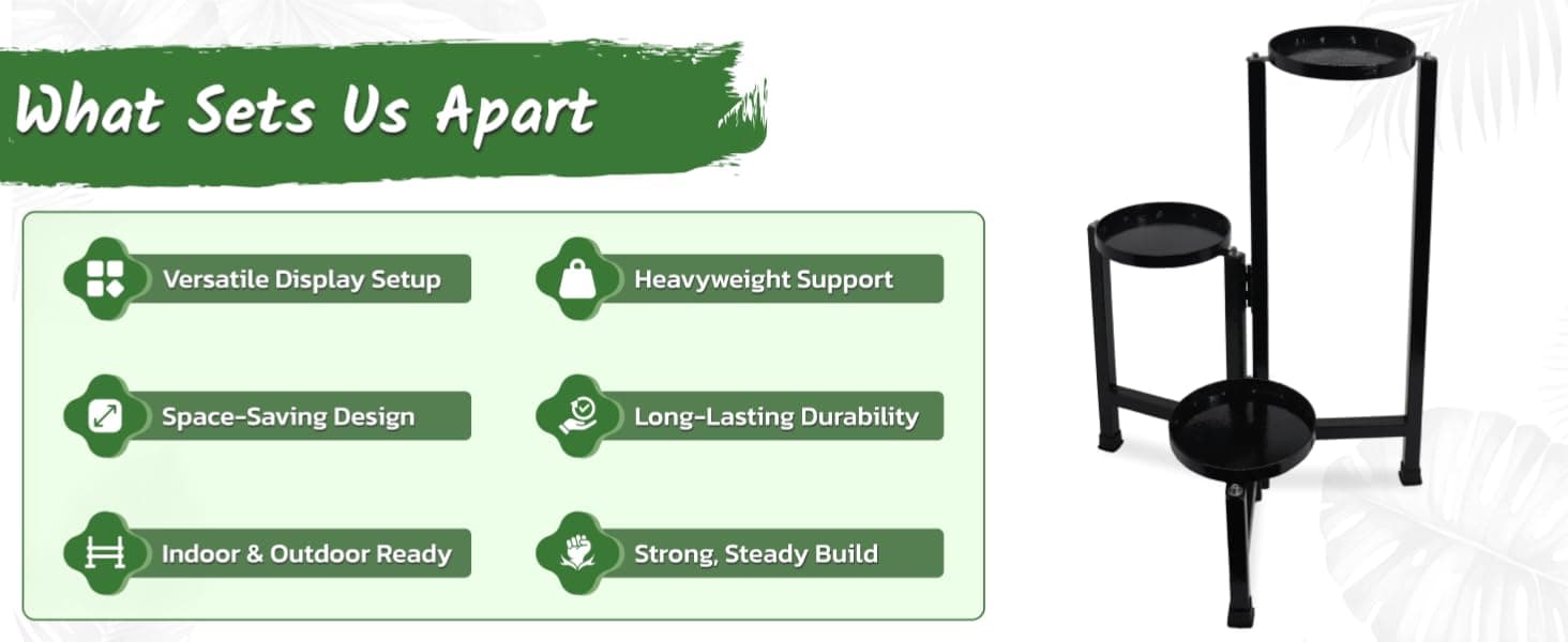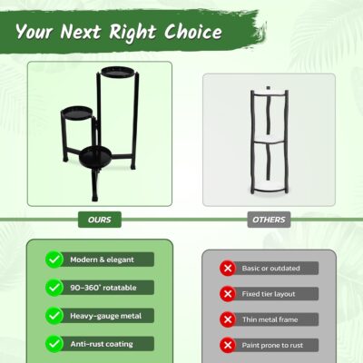 Elegant for Indoor & Outdoor Use – Whether you need plant stands for indoor living room or plant stands for outdoor balcony, this durable metal plant stand adapts easily to any space with charm and functionality.