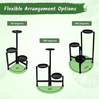 3 Tier Plant Stand | | Corner plant stand | Rotatable With 90° to 360° Adjustable Angles | Vertical Plant Stands For Outdoor Balcony & Indoor | For Living Room Décor, Patios, Gardens – Black