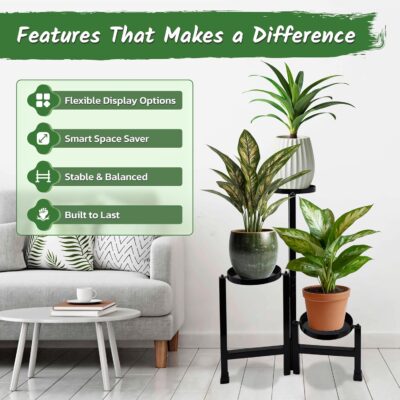 Space-Saving 3 Tier Plant Stand – This modern 3 tier plant stand is ideal for compact spaces, functioning as a stylish vertical plant stand or plant stand for living room, helping you display plants without taking up much floor area