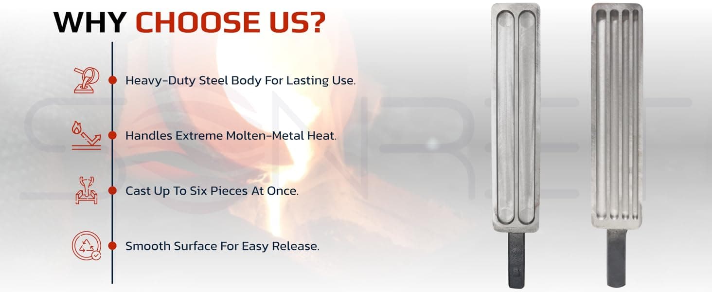WELL DESIGNED: An ingot mold needs to release its molded metal easily. Our ingot mold is enabled to transform scrap metal pieces into state of the art ingot