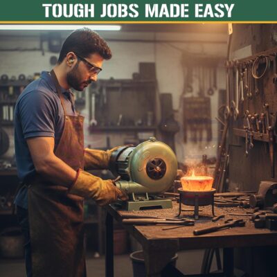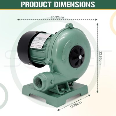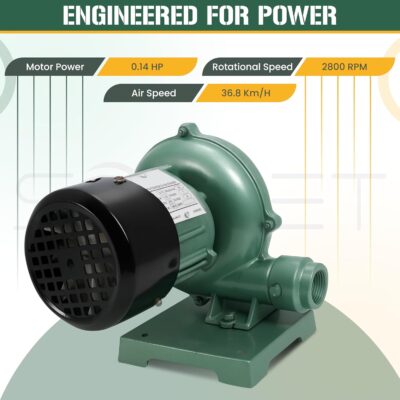 Blower Machine with Stand – 0.14 HP Copper Winding Motor – Electric Blower Fan Airflow of 36.8 Km/h with 1.5-inch Outlet – 2800 RPM Operates On 220–240V AC – for Industrial Heating, Melting
