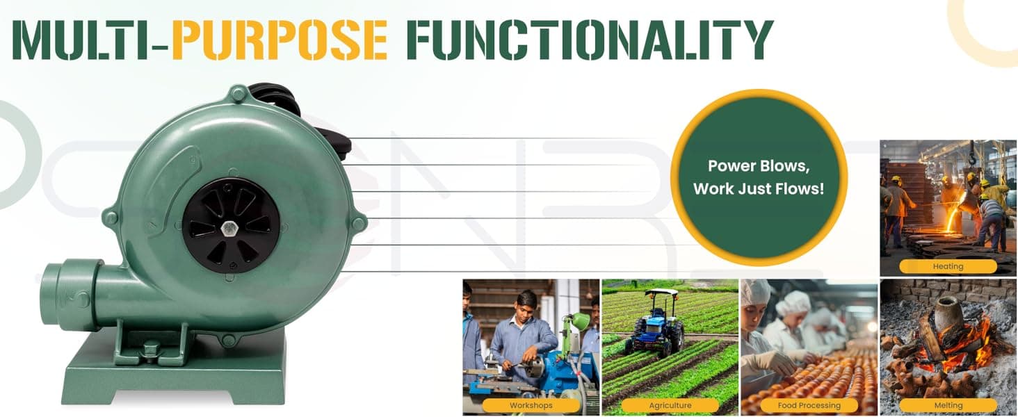• Industrial Blower Uses: The Bhatti Blower is designed for demanding industrial applications such as agriculture, food processing, and workshops, ensuring powerful air or gas movement at high volumes and pressures