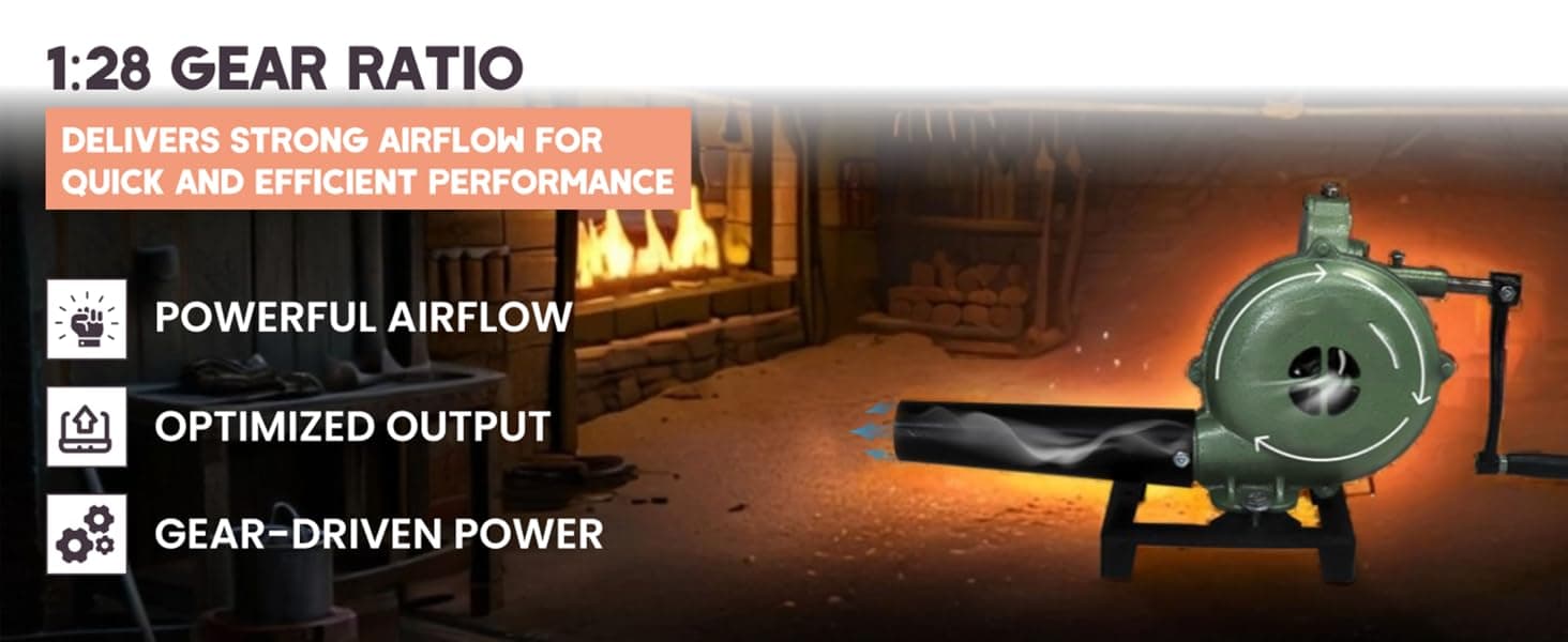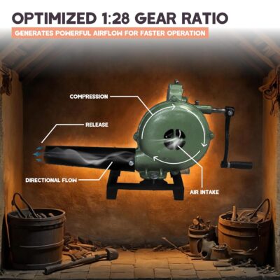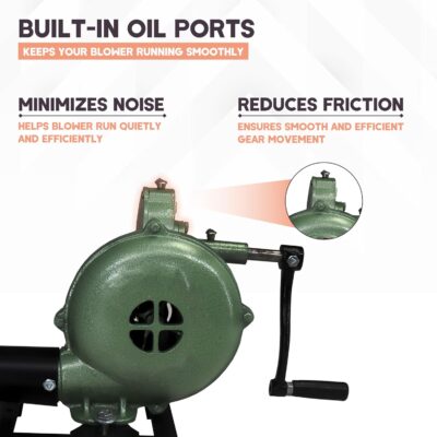 Smooth & Quiet Operation: This manual air blower fire tool features oil ports for easy lubrication, ensuring quiet, smooth use—perfect as a blacksmith blower lasting, quiet performance.