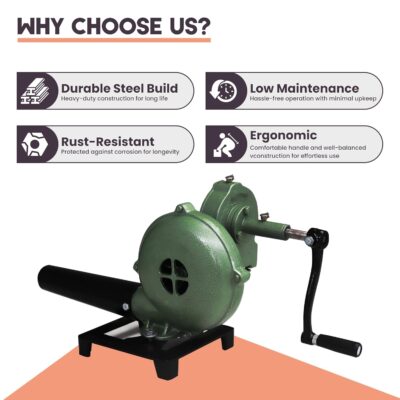 Applications: Ideal as a blacksmith hand blower for forge fires, an air blower manual for coal furnaces, and can be use as blower for barbeque grill setups for camping, or outdoor cooking needs.