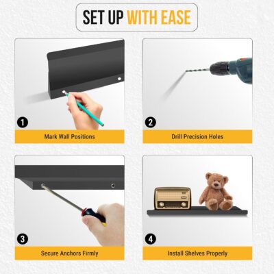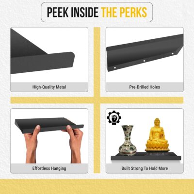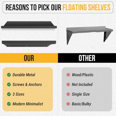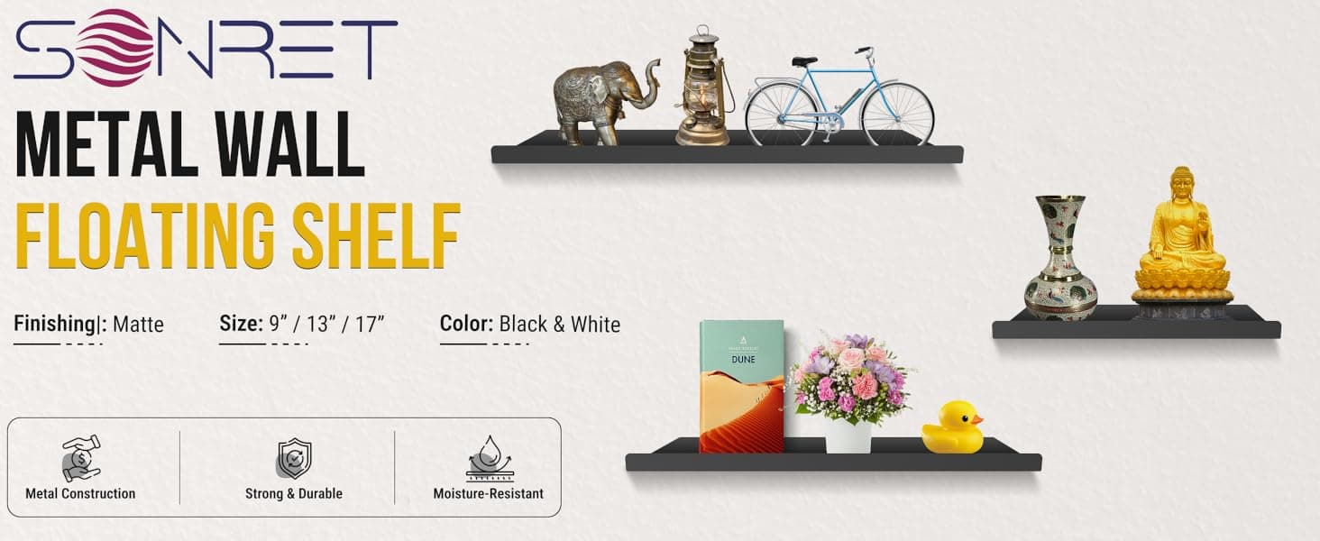 • Durable, Moisture-Resistant Metal: Crafted from high-quality metal with a moisture-resistant coating, these shelves suit both dry and humid spaces. Use them as a white shelf accent in your wall decor, a compact alternative for tight spaces, or a sleek floating shelf in bathrooms and kitchens.