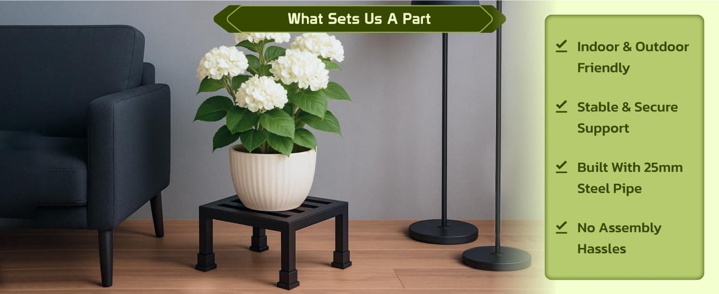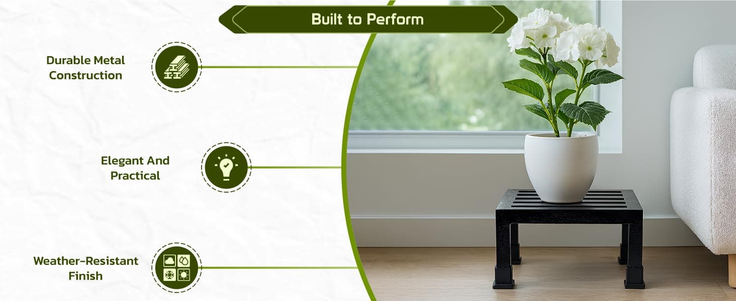 Modern Yet Traditional Appeal: Sleek black finish, which blends urban design with utility, ideal for those seeking stands for plants in balcony & homes