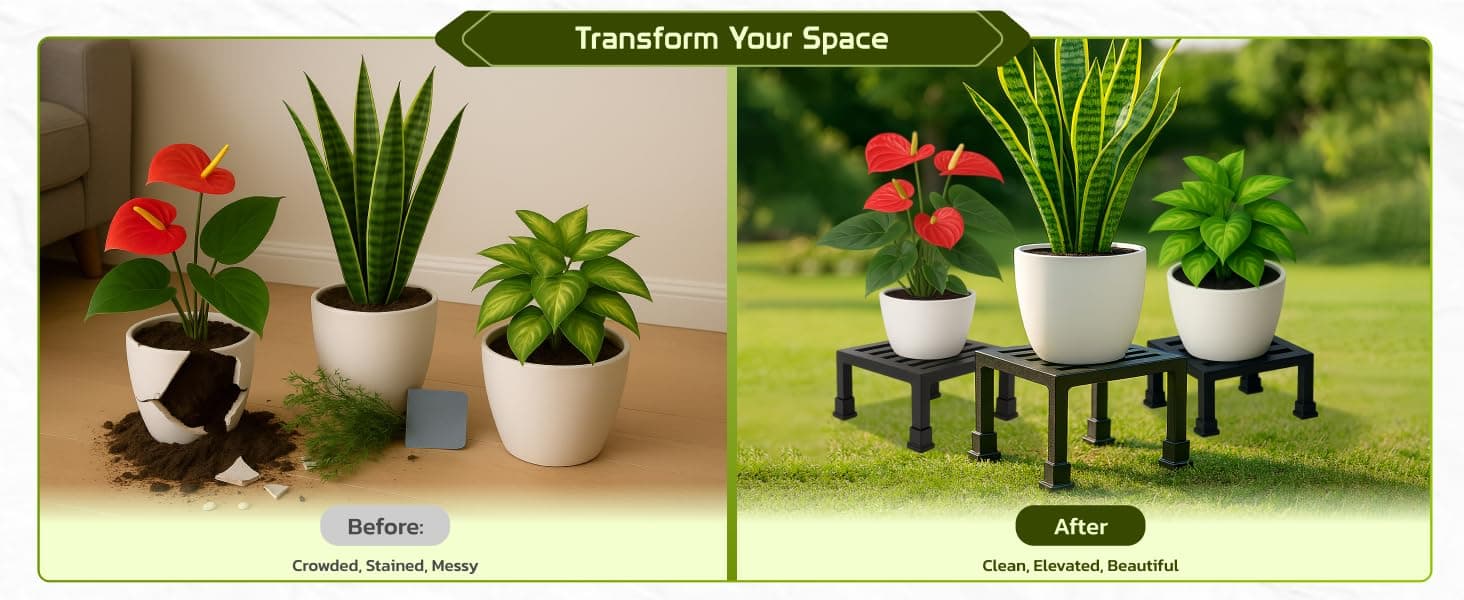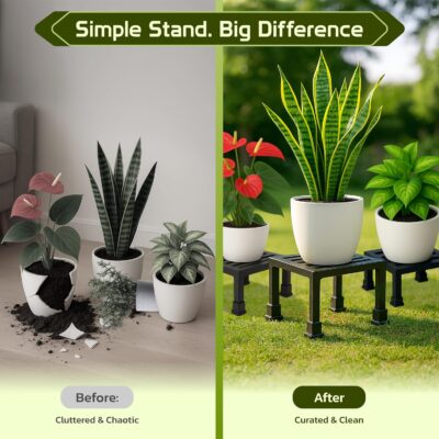 Space-Saving Form: Compact yet functional, this single stand for plant is perfect for small balconies and patios, helping organize your flower pot stands neatly