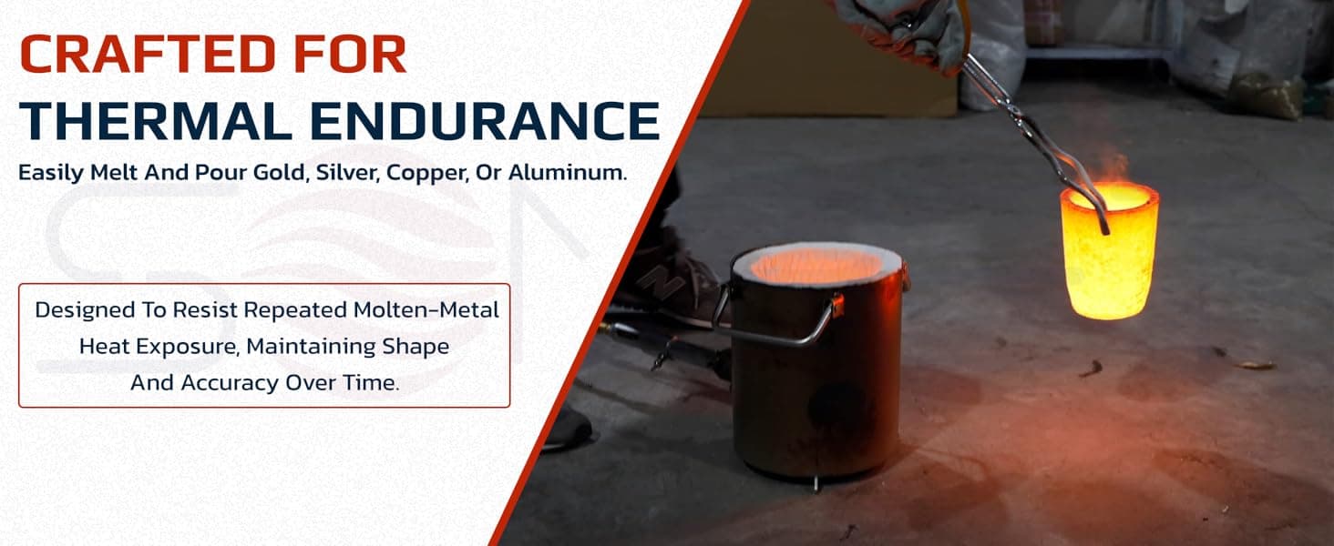 Heat-Resistant & Long-Lasting: Withstands extreme heat inside a furnace for melting metal; compatible with gold melting furnace, metal melting machine, or traditional ur furnace setups