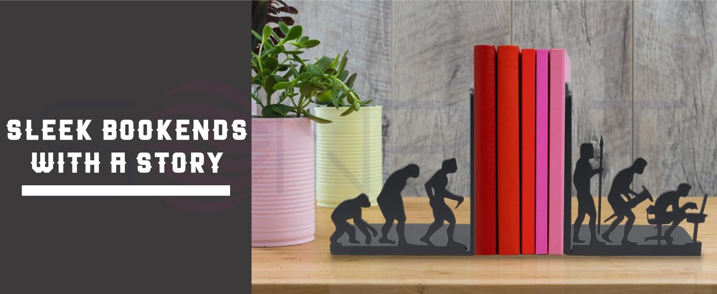 Human Evolution Metal Book Ends – Decorative Book Organizer for Table | Stylish & Durable Stand for Books, Files & Magazines for Home, Office & Study Use