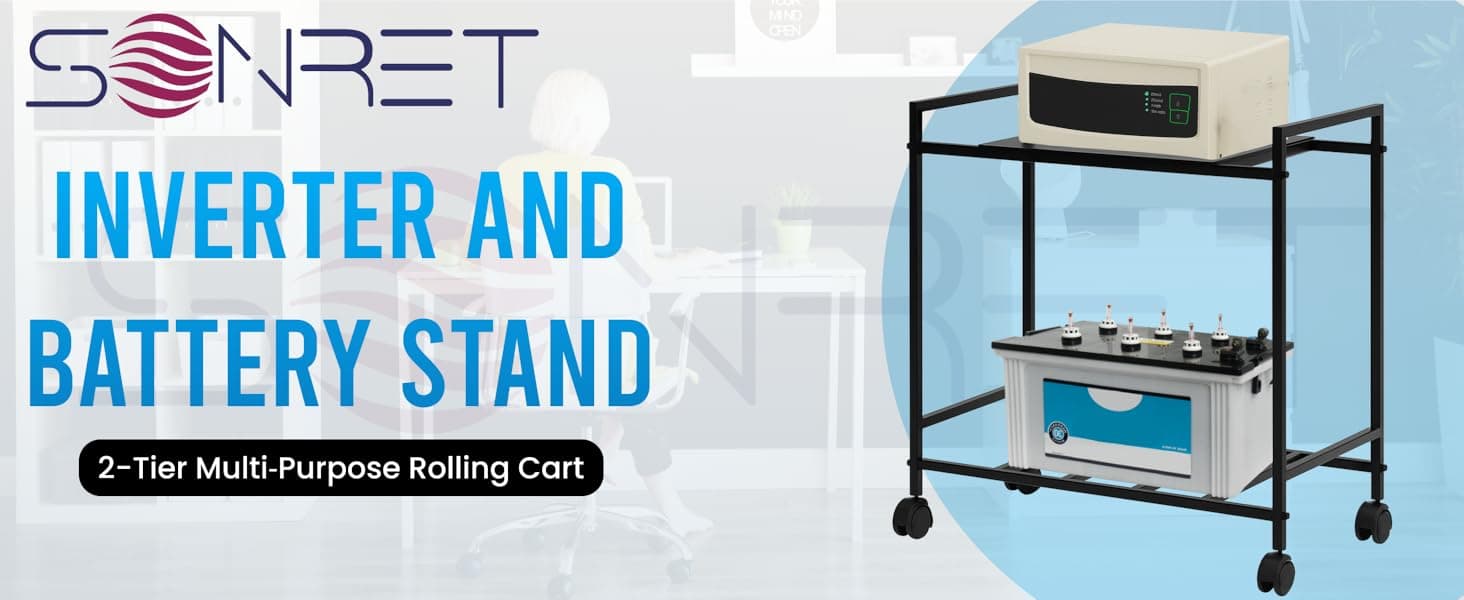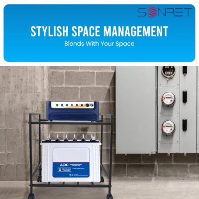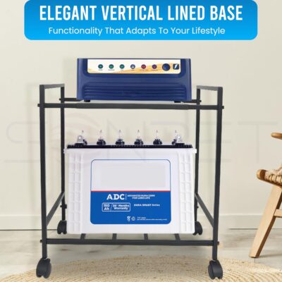 Dual-Level Design: This inverter Stand for home features two level—top for UPS & inverter unit, bottom for tubular battery—ensuring organized, in one sturdy trolley