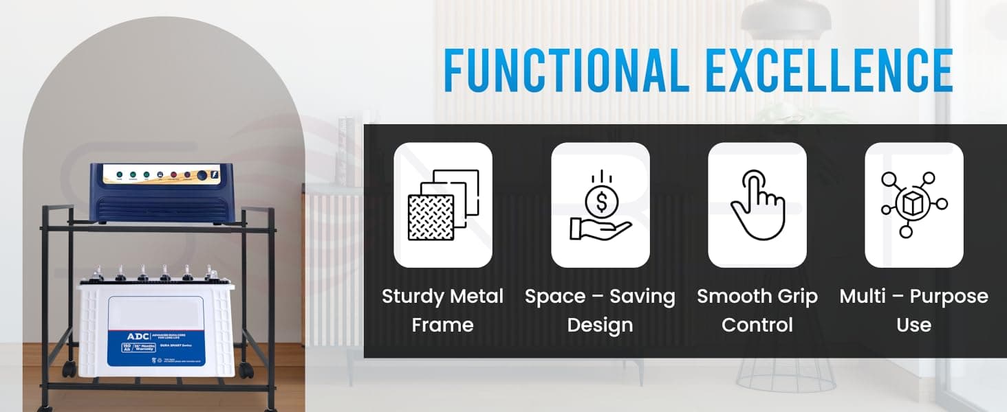 Multi-Purpose Use: This inverter stand is ideal for UPS, tubular battery, stabilizers, printers, or other home devices—offering organized tray storage with smooth wheels