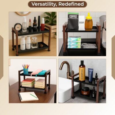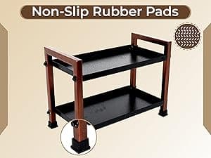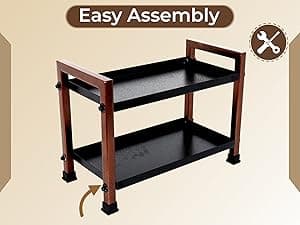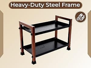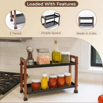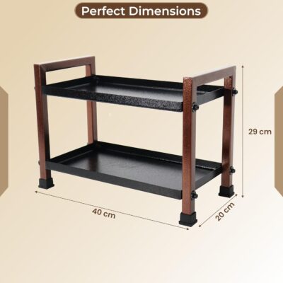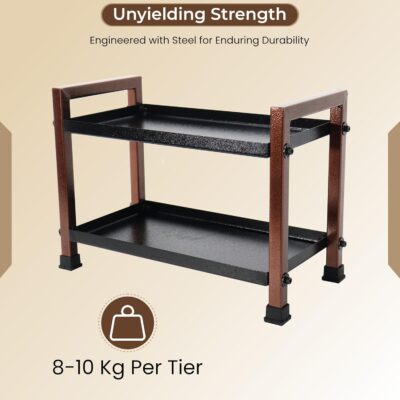 • Durable & Multipurpose Frame – Built from 1.20 mm mild steel with a powder-coated black + copper finish, this sturdy rack works as a kitchen stand, perfume organiser, utility shelf, or small appliance stand for mixer grinders, mini ovens, or microwave bases
