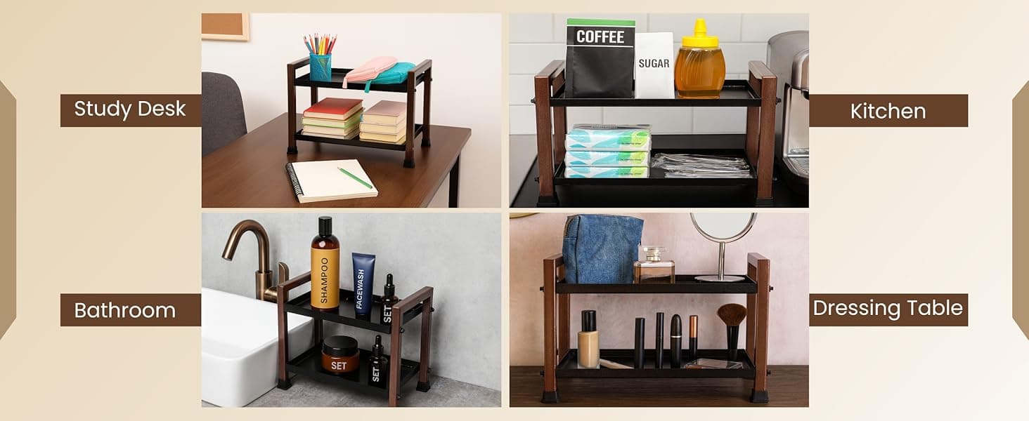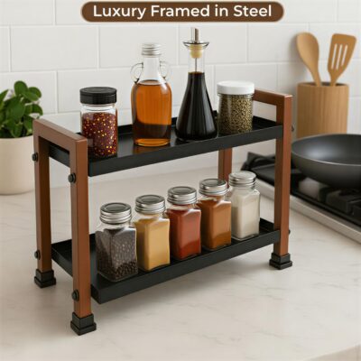 • Space-Saving Countertop Design – The two-tier vertical structure offers ample storage without occupying extra slab space, making it an ideal kitchen platform organiser or corner stand for compact Indian kitchens