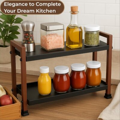 Kitchen Organizer Rack –Multipurpose Oil Stand & Kitchen Stand Organiser for Neat Storage of Jars, Spice Bottles, & Cooking Items in Tight Spaces, Durable 2 Tier Rack for Storage Multipurpose