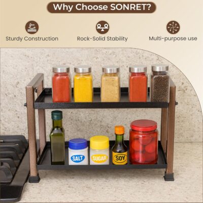 • Multi-Use Kitchen Storage Solution – The SONRET standing rack serves as a versatile kitchen organiser, countertop storage rack, and dining table shelf, keeping everyday essentials neatly arranged and easy to access in any home setup