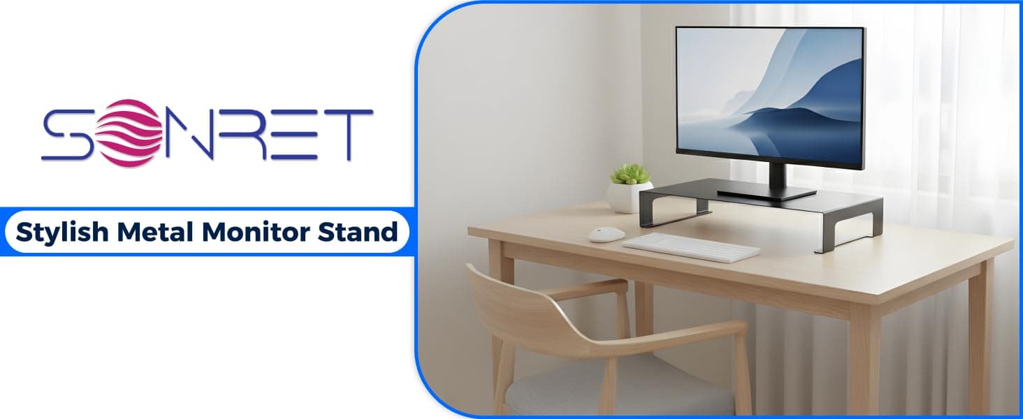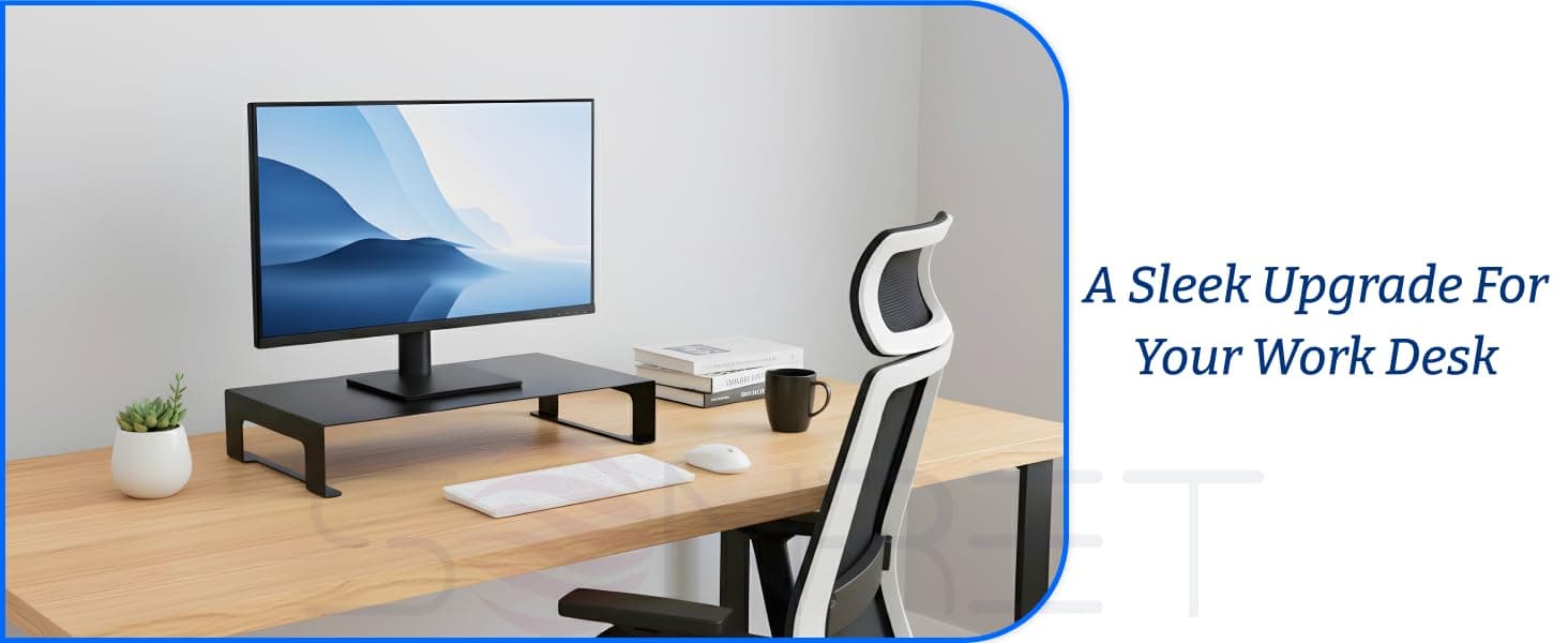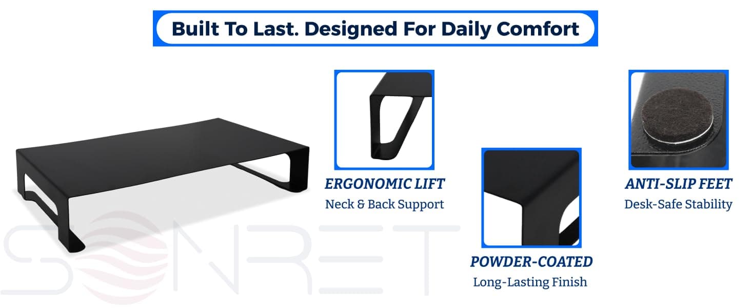 Ergonomic Monitor Height Riser: Raise your screen with this sturdy monitor stand for desk, designed to reduce neck strain and improve posture while saving space on your desktop stand for table