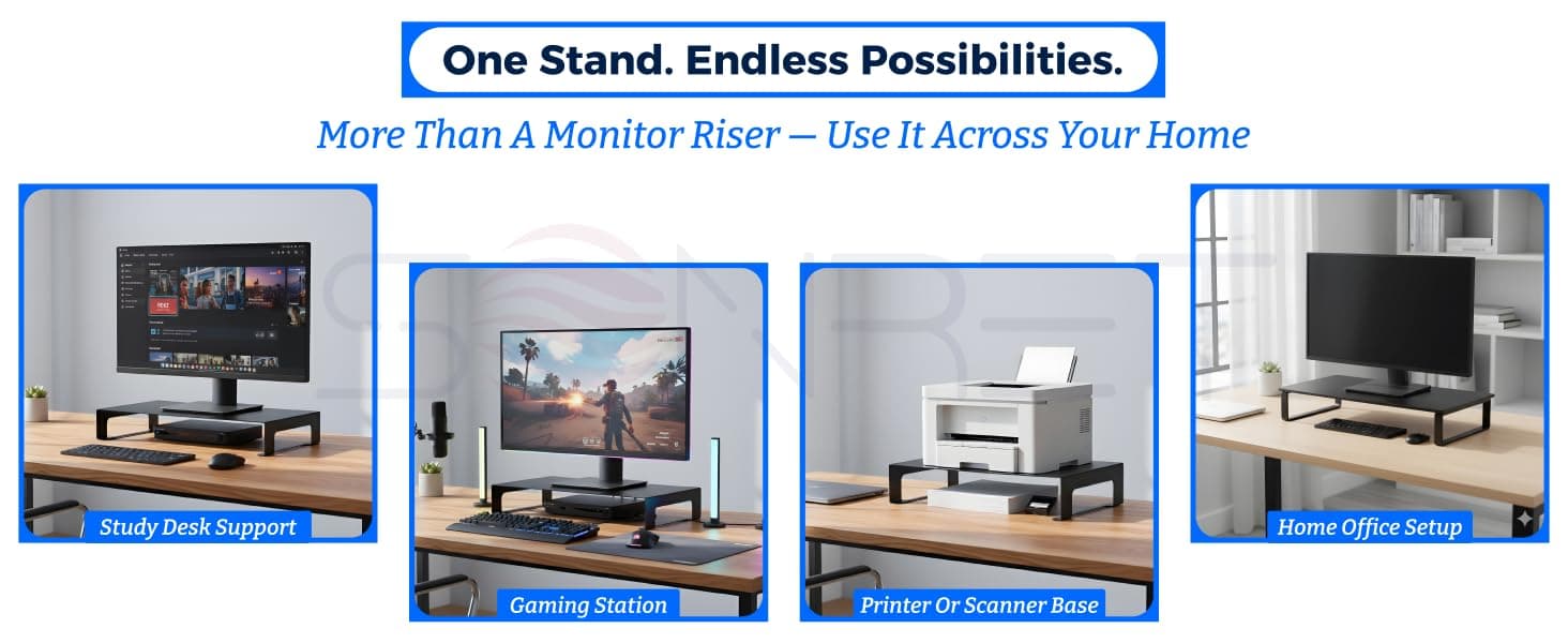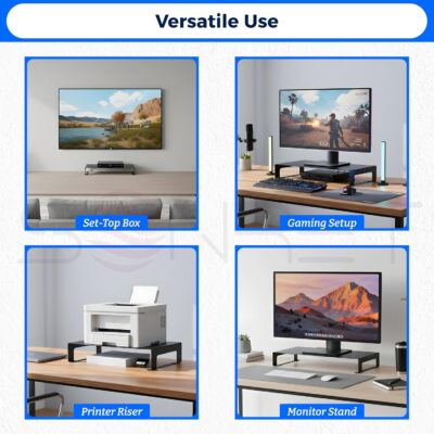 Multipurpose for Home & Office Use: Doubles as a printer stand for home, monitor riser for desk, and printer stand for office desk, giving you a compact and reliable surface for all work setups