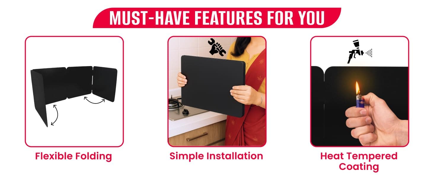 Heat-Resistant Finish: This durable kitchen wall protector crafted from high-grade steel with an HT coating, serving as a long-lasting kitchen stove back wall protector