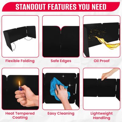 Flexible Design: This foldable splash guard features 4 hinged panels that adjust to fit various burners for stove cover shield, ideal as a and splatter guard for cooking.