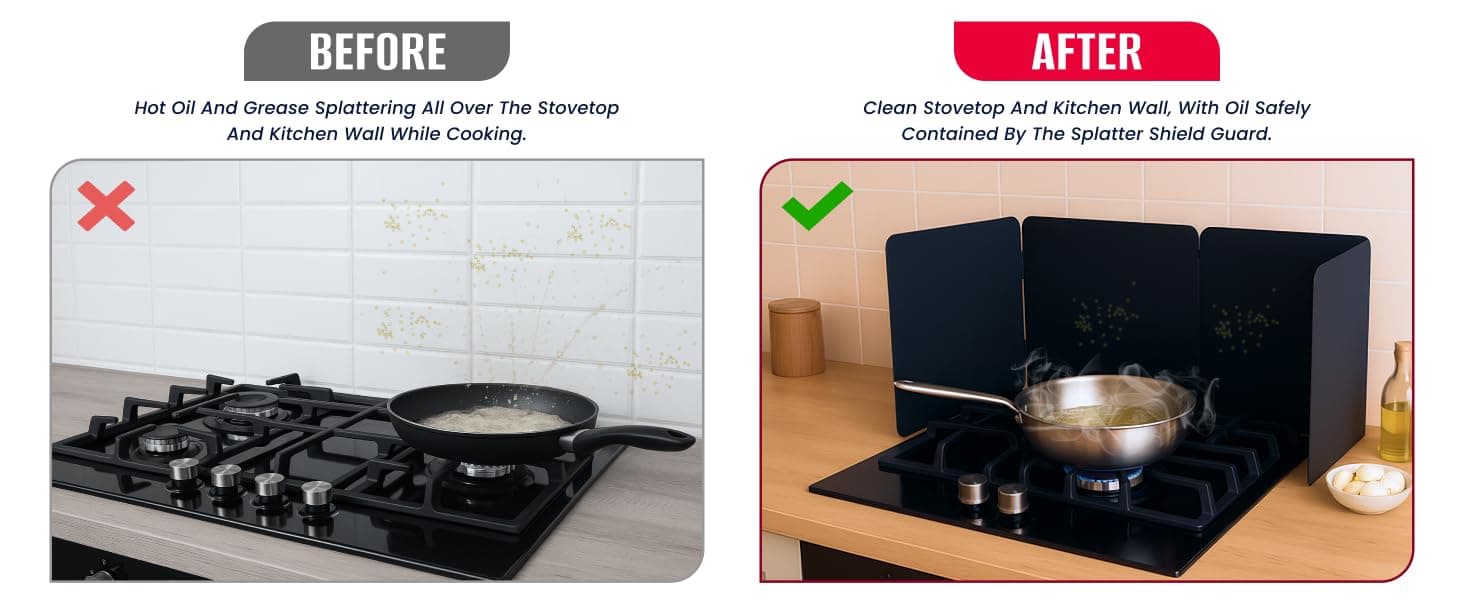 Effective Splatter Protection: This 4-panel Splatter Guard For Cooking shields your wall from oil, grease, and sauce, providing stove cover shield to make your kitchen clean and safe.
