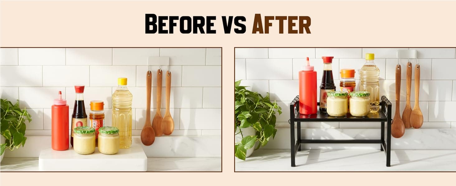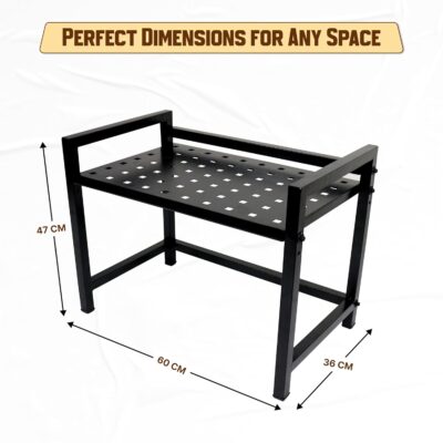 Quick & Easy Assembly: The stand for oven is effortless setup—Attach the shelf, adjust the rods—pre-drilled parts and tool kit included. No extra tools needed. Making it Ideal microwave stand for kitchen platform