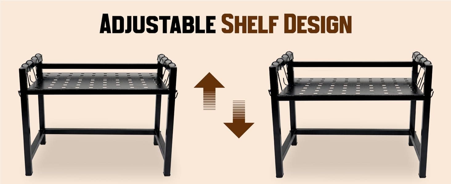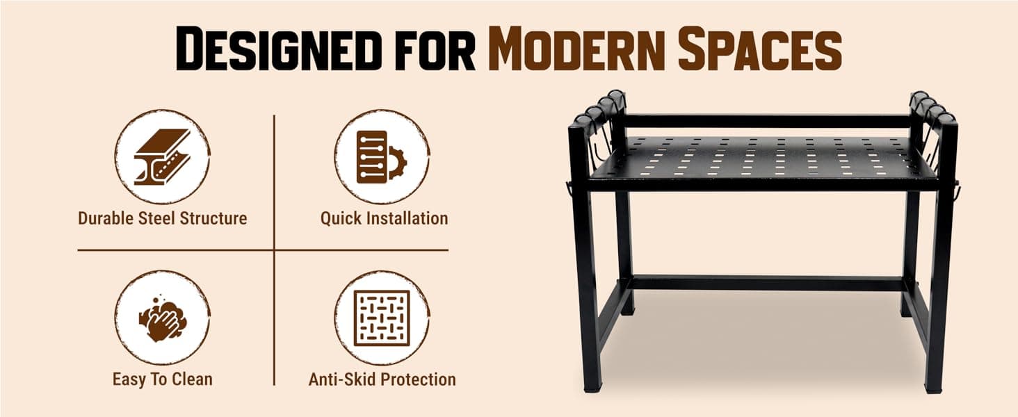 Multipurpose 8 SS Hooks: Equipped with 8 SS this oven stand adds extra utility by allowing you to hang kitchen tools, spatulas, tongs, oven mitts, whisk or cleaning cloths