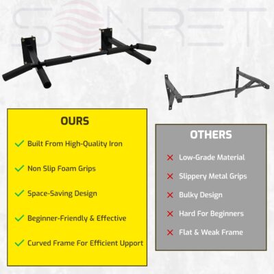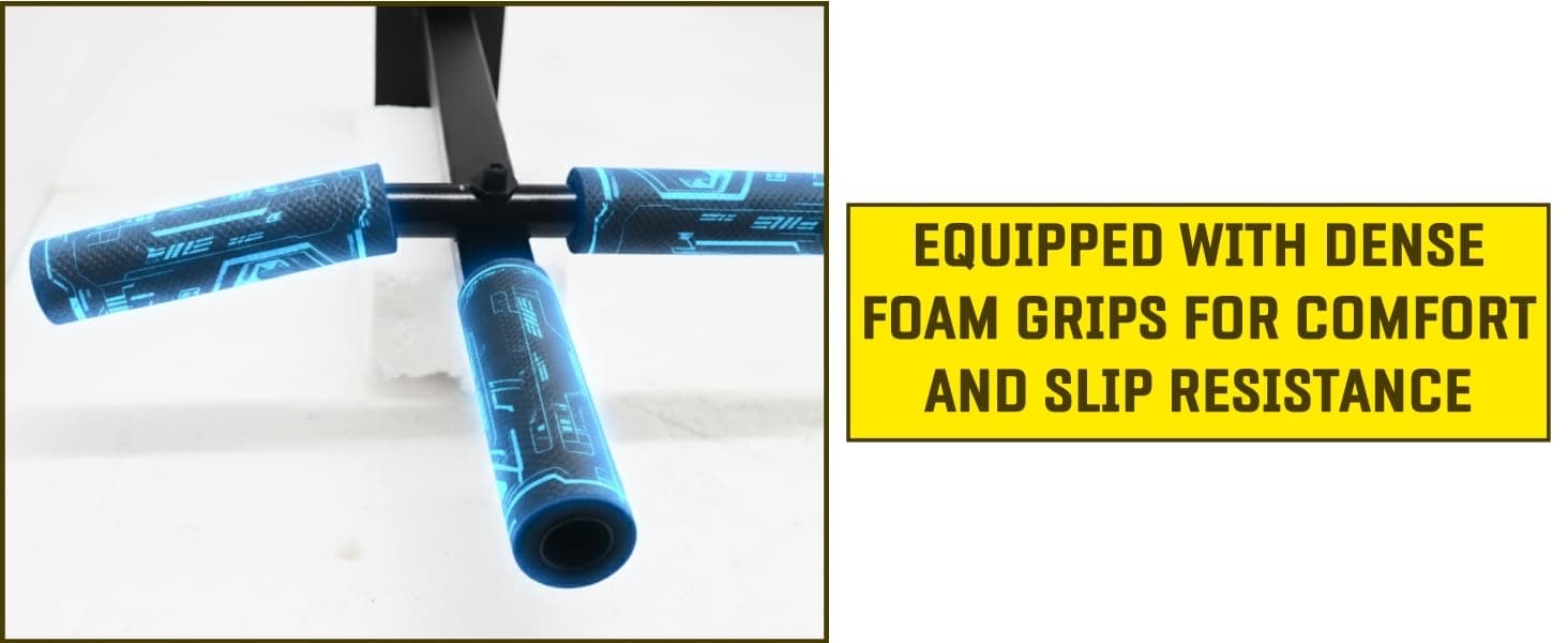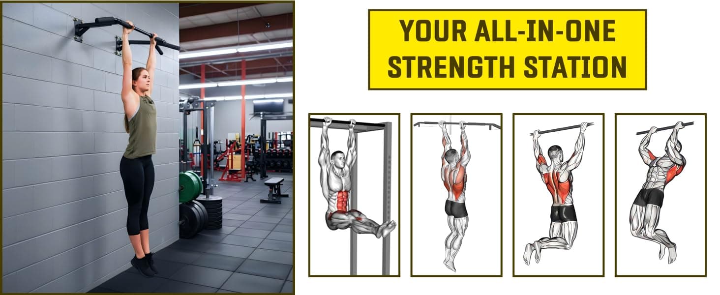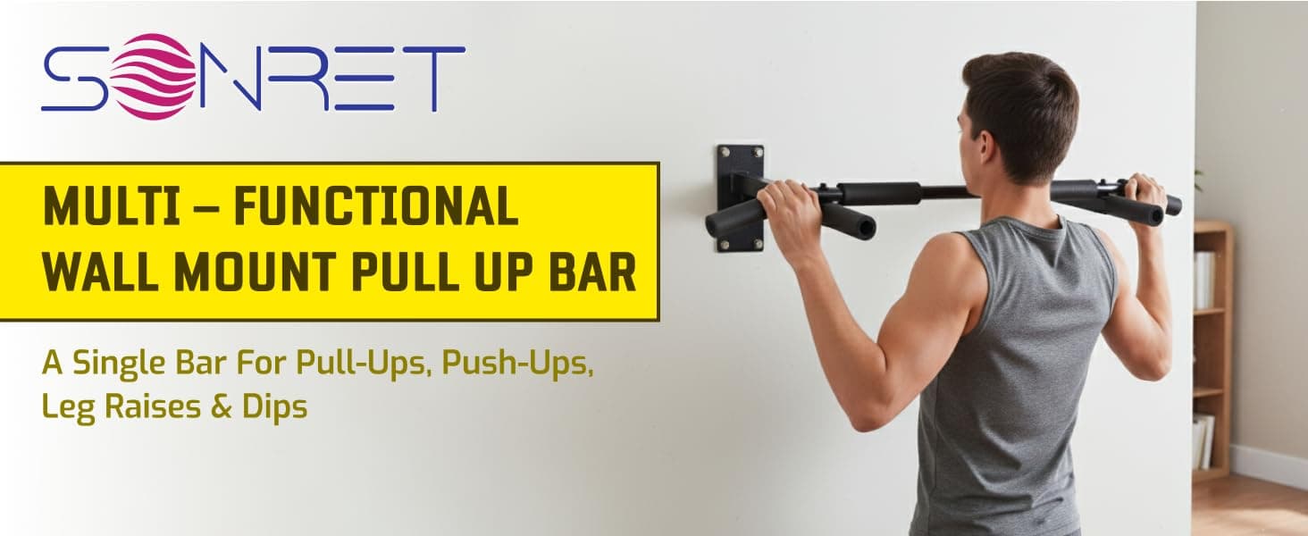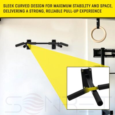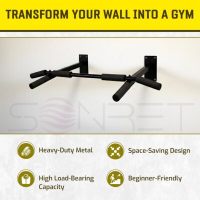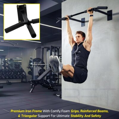 Heavy-Duty Construction: This wall mounted pull up bar is built with premium steel features reinforced beams & foam grips, ensuring stability and safe workouts pull up bar for home