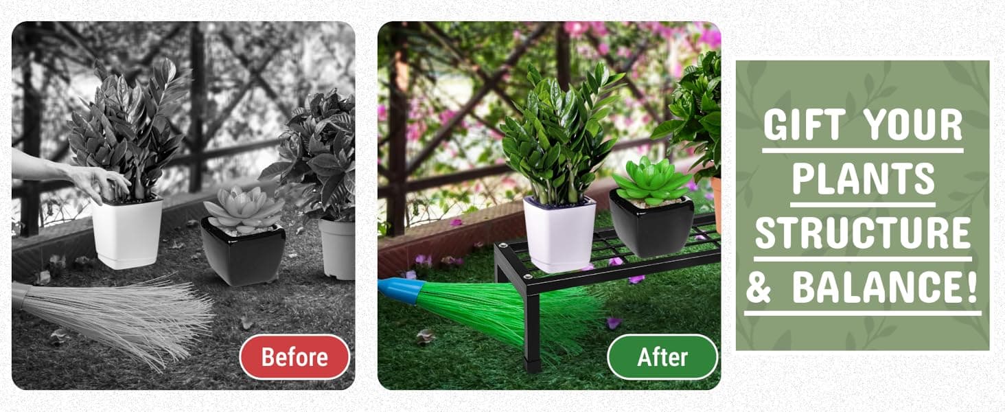 • Fits Seamlessly Into Any Space: Whether placed on a balcony, in your garden, or inside your home, this plant stands set blends effortlessly into any environment, as this metal plant stand is designed to elevate your décor while supporting a variety of plant types in any room or outdoor setting.