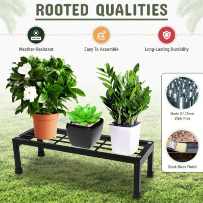 • Durable & Easy setup – This metal stand for pots is designed to resist weather damage, making it ideal for year-round use, and whether you use this pot stand for balcony, indoor or garden, it assembles in minutes with minimal tools, saving time without sacrificing strength