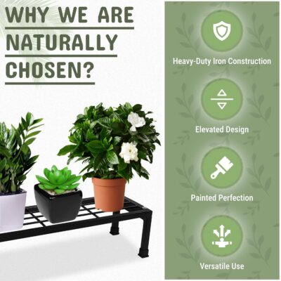 • Heavy Duty Build with Modern Style – Crafted with Heavy-Duty Iron Construction, this sleek black flower pot stand offers excellent stability for heavy pots and large plants, while adding a modern touch to indoor and outdoor décor.