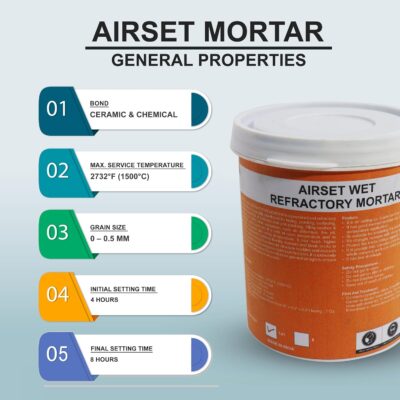 This Airset Mortar is pre-mixed wet Refractory Cement, no heat cure required, and it is always in ready-to-use form