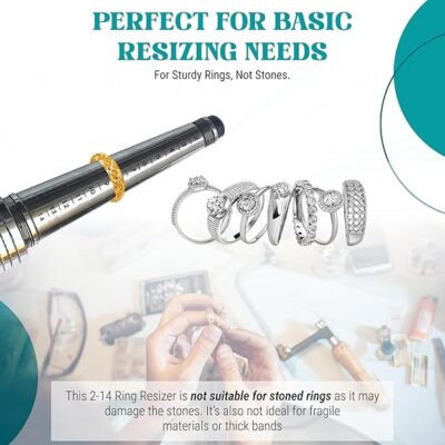 Resize Rings at Home or Work – Easily expand plain rings from US size 2 to 14 using this tool; no more waiting or paying for external resizing services.