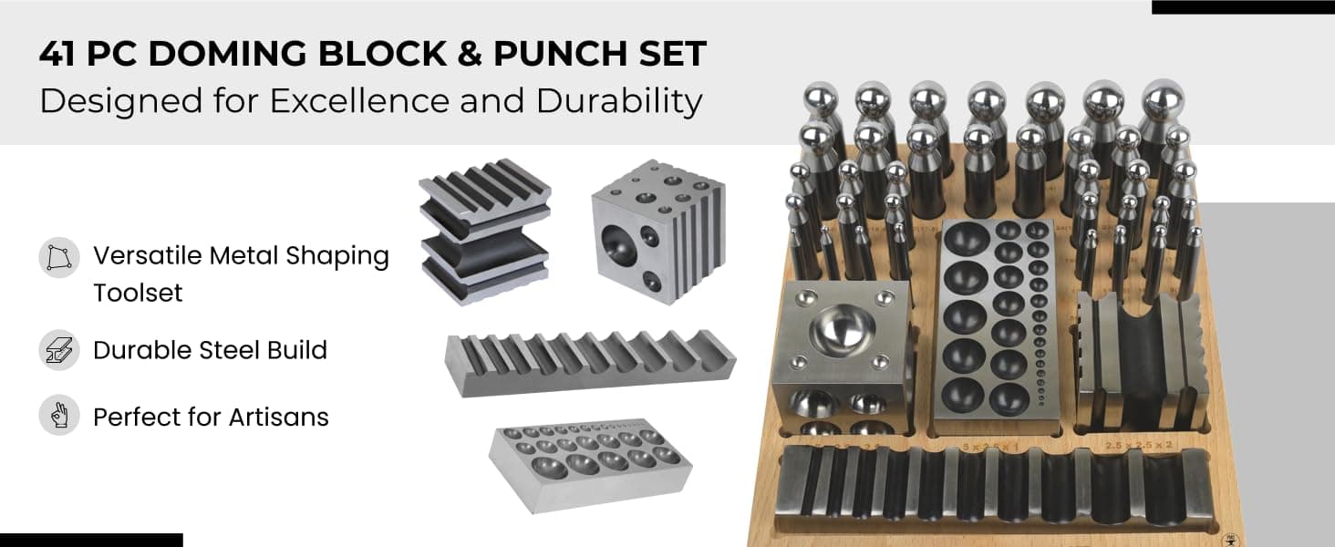 SONRET 41-Piece Doming Block and Punch Set – Complete Dapping Block Set with Steel Dapping Punches, Doming Punch Tools & Wooden Base for Jewellery Metal Forming