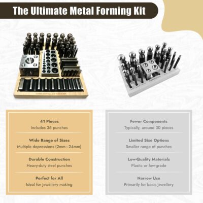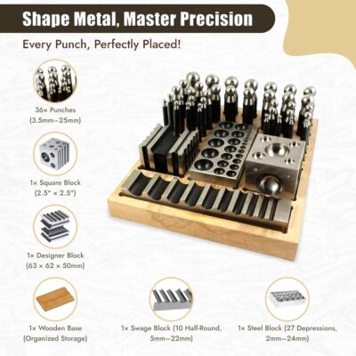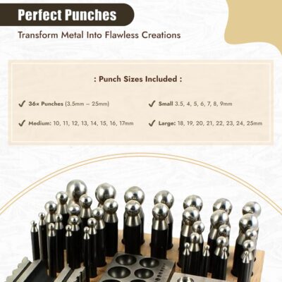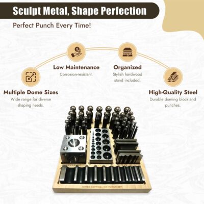 Be the first to review “SONRET 41-Piece Doming Block and Punch Set – Complete Dapping Block Set with Steel Dapping Punches, Doming Punch Tools & Wooden Base for Jewellery Metal Forming” Cancel reply