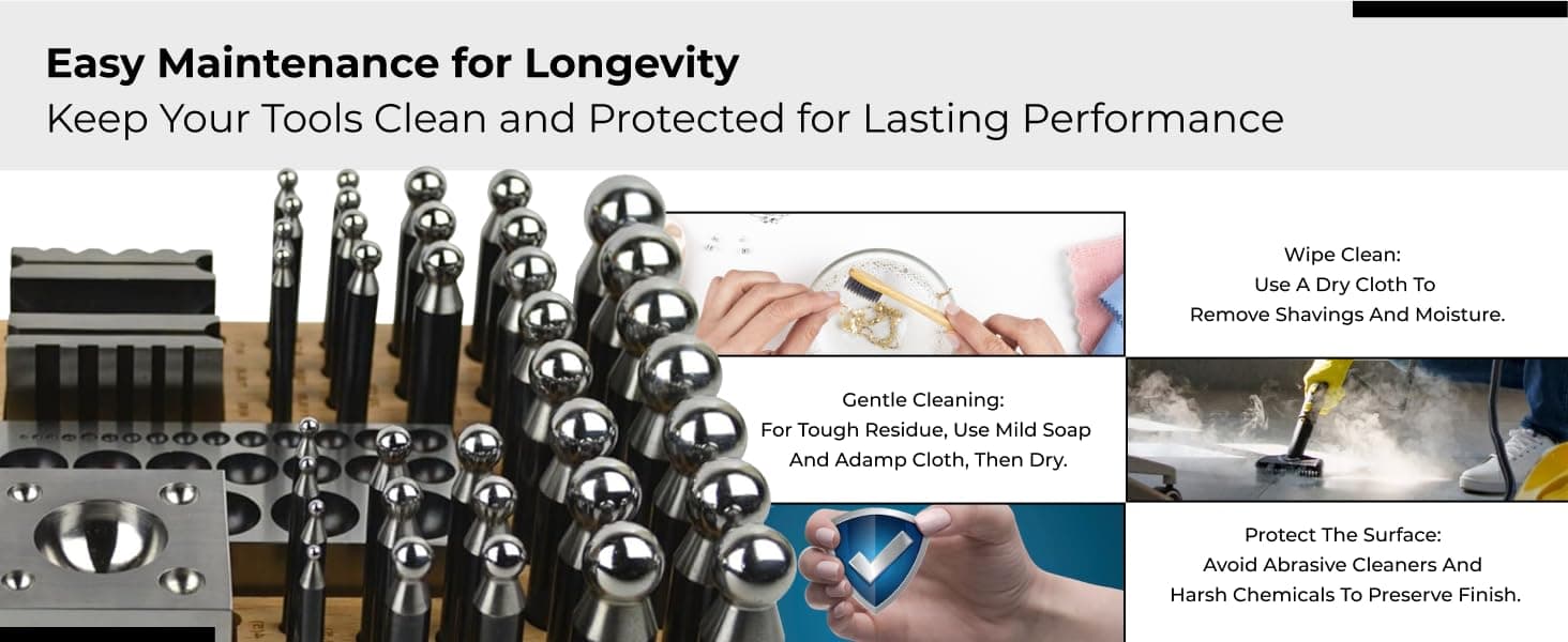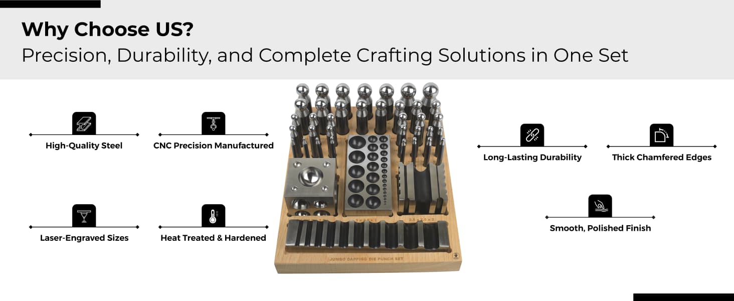 Lasting Performance, You Can Trust: Built from hardened steel, every dapping punch and doming block in this kit is designed to withstand repeated use without bending or rusting