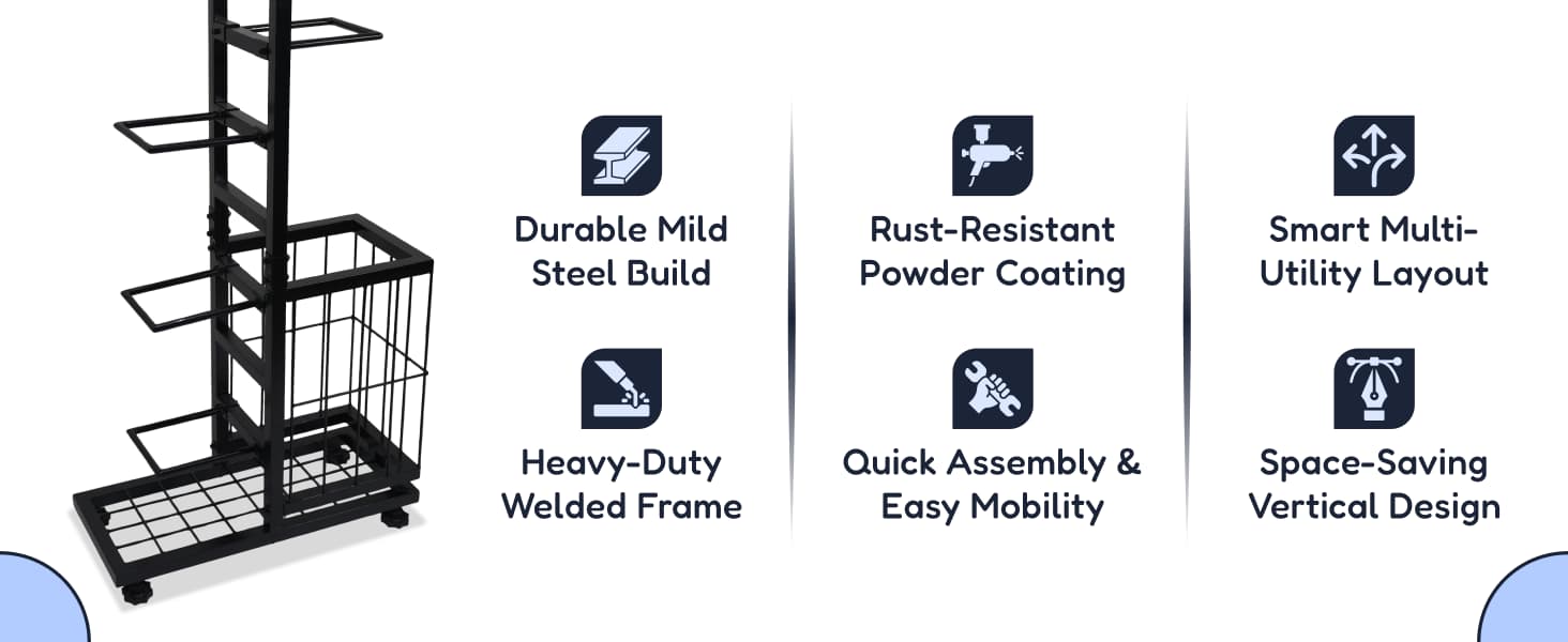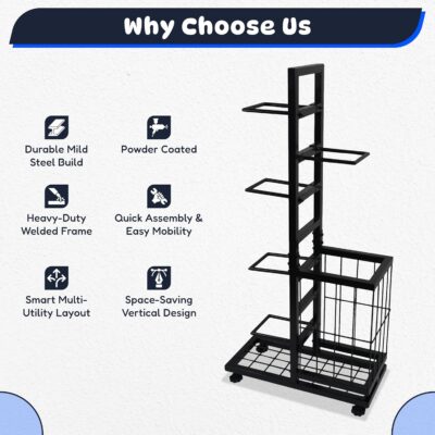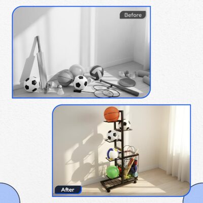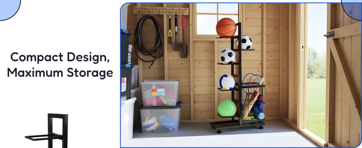 • Space-Saving Design: Keep your area clutter-free with this sports organizers and storage rack — neatly arrange all your sports equipment, preventing gear damage and saving space.