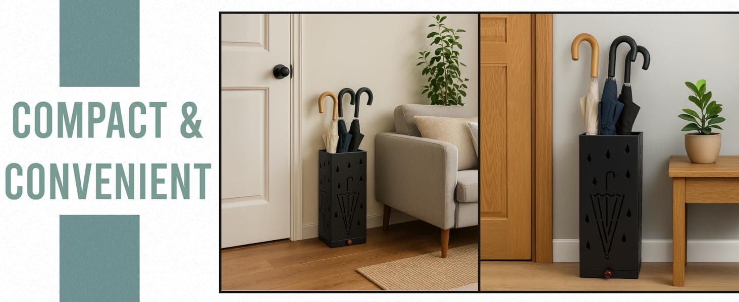Multi – Purpose Stand: This umbrella stand serves as a practical storage solution for umbrellas, walking sticks, and canes—suitable for home, office, or entryway
