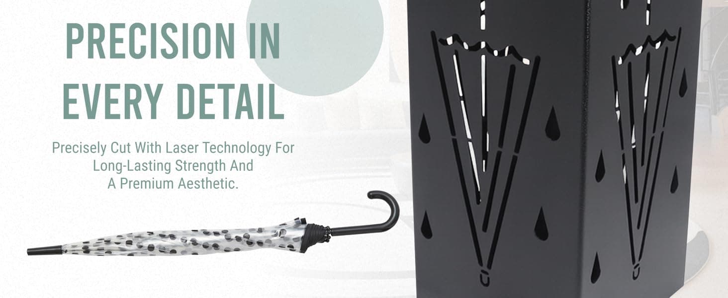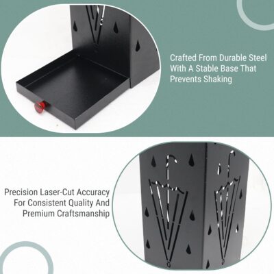 Umbrella Stand – Umbrella Stand Holder with Laser Cut Design – Easy Clean Umbrella Holder with Removable Drip Tray – For Canes,Walking Stick – Umbrella Holder for Home, Office & Hotel – Black