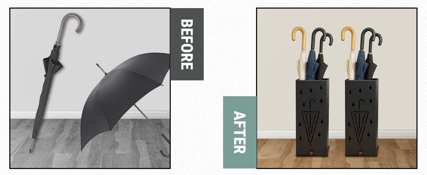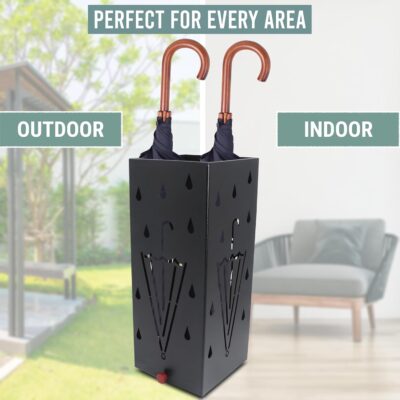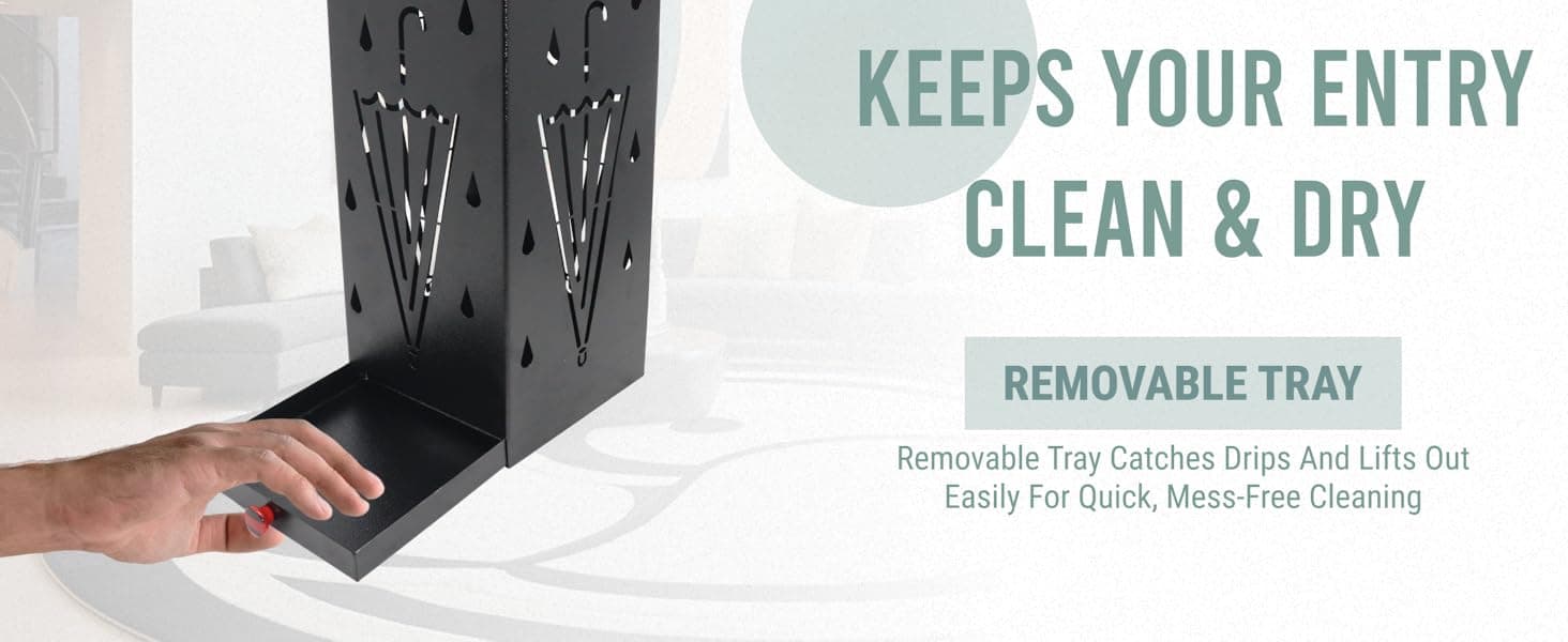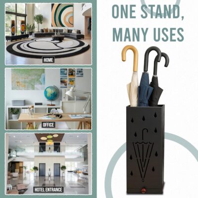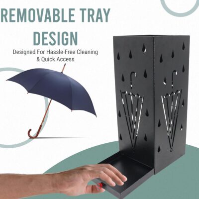 Removable Drip Tray: This umbrella stand holder comes with removable drip tray that collects water from wet umbrellas, keeping your floors clean, dry, and mess-free