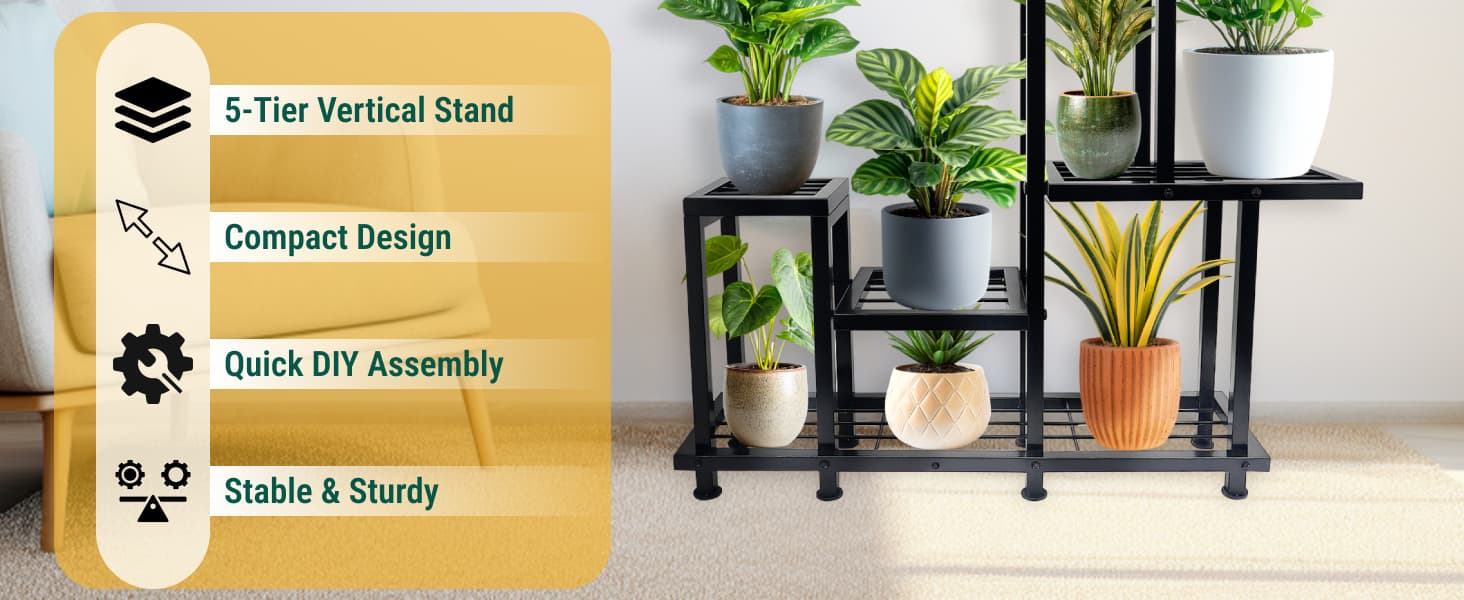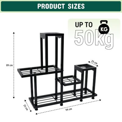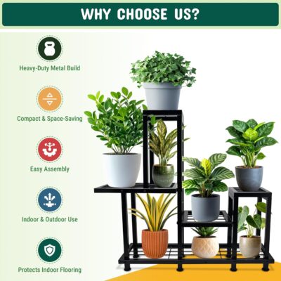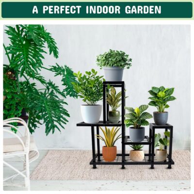Multi-Tier Vertical Layout for Small Spaces: This vertical plant stand is ideal for balconies and patios, offering a compact plant rack solution for organizing flower pots and indoor greenery beautifully