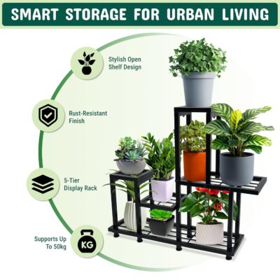 Vertical Plant Stand for Home – 5-Tier Metal Plant Stands for Outdoor Balcony – Space-Saving Flower/ Gamla Stand For Plants for Indoor and Outdoor Plants and Aesthetic Home Décor