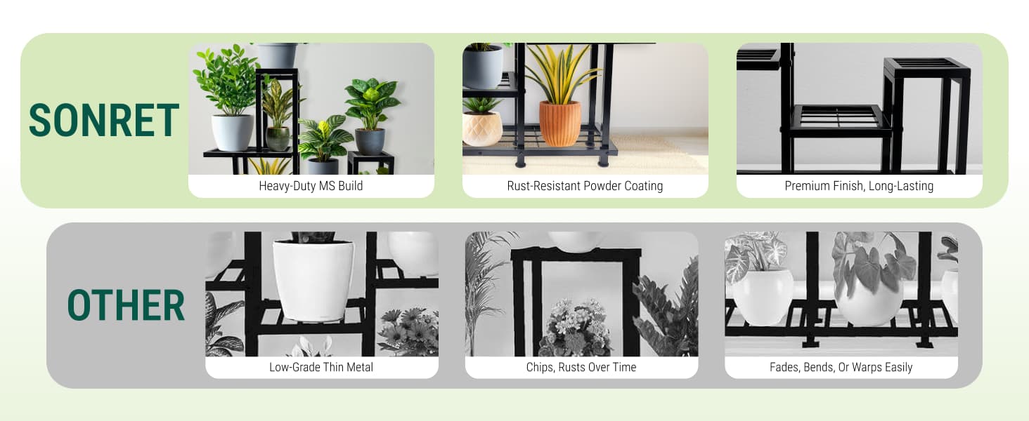 Stylish Pot Stand for Indoor Plants: Use this flower pot stand for balcony corners or living rooms as a sleek indore plant stand that supports multiple plant pots without cluttering your space